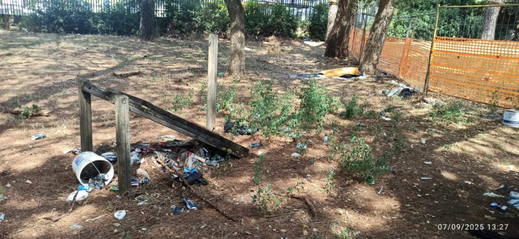 Fontanelle sigillate, pavimentazione sconnessa e un cantiere che, invece di riqualificare, sembra aver aggravato la situazione. È il quadro descritto da Andrea Ragusa, attivista del Movimento 5 Stelle, a proposito delle condizioni del Parco Falcone e Borsellino, uno degli spazi verdi più frequentati della città. All’ingresso, la fontanella non è funzionante e chi percorre i vialetti deve fare attenzione alle lastre sconnesse. Più avanti, l’area del cantiere avviato per la “rifunzionalizzazione e riqualificazione delle aree verdi comunali degradate” si presenta chiusa su via Matteotti, ma recintata in maniera approssimativa all’interno. Secondo Ragusa, all’interno dello spazio si registrano situazioni di forte degrado: giacigli di fortuna realizzati da senzatetto e la presenza di rifiuti non solo legati al cantiere, ma anche derivanti da feste, come sacchi pieni di bicchieri e lattine. La fine dei lavori, prevista per l’8 maggio 2024, appare ancora lontana nonostante il termine sia stato superato da oltre un anno.