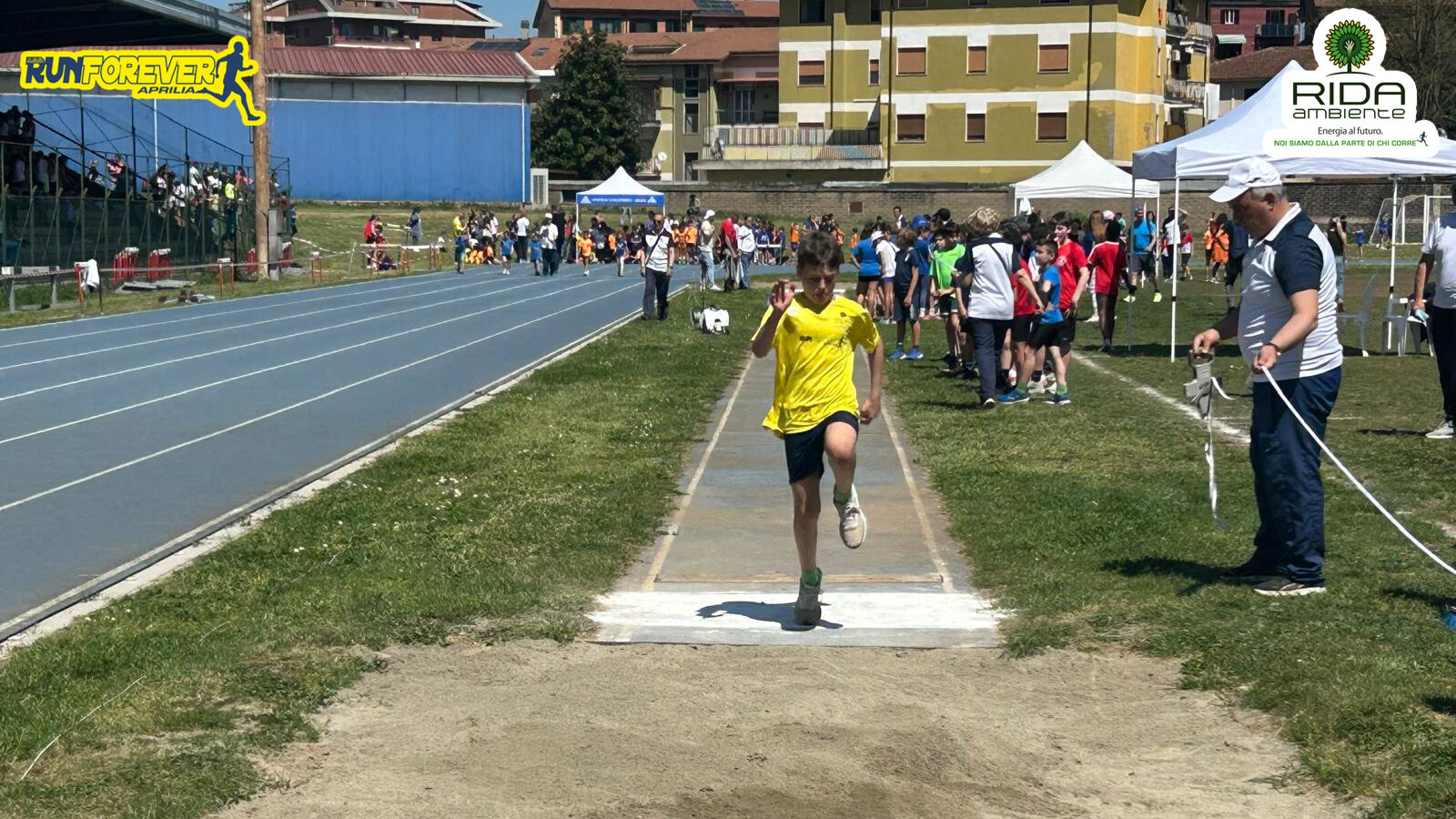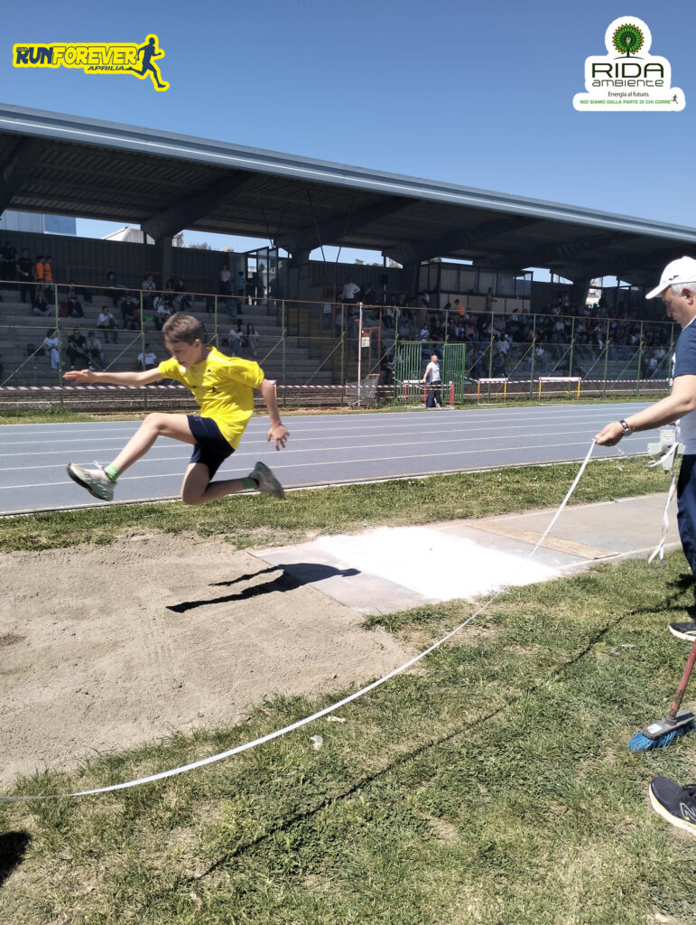 Alla manifestazione sportiva anche la Scuola di Atletica Runforever Aprilia ha partecipato con i suoi atleti. Tra il più piccoli presenti in campo Edoardo Roma EM6 e Matteo Ciofi EM10 per i quali erano previste una gara di corsa + un concorso. Infatti ambedue hanno partecipato ai 400 metri e al Salto in Lungo. Edoardo corre i 400 metri in 1’37”.87 migliorando il suo primato di poco più di 4 secondi, mentre nel Salto in Lungo arriva a 2,00 metri; Matteo corre i 400 metri per la prima volta arrivando al traguardo in 1’18”.51 mentre nel Salto in Lungo non va oltre i 3,16 metri.
