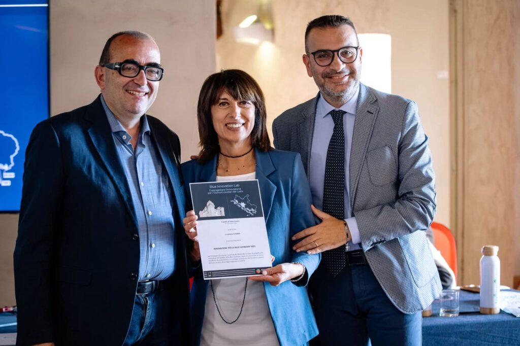 L’On. Roberta Angelillivicepresidente della Regione Lazio e assessore allo Sviluppo Economico, ha inoltre consegnato ai due assessori un attestato per il valore fortemente innovativo del progetto realizzato indicando la seguente motivazione: “per l’impegno, la visione e il contributo offerto allo sviluppo di progettualità innovative nell’ambito della Blue economy capaci di valorizzare le risorse marittime, la sostenibilità e lo sviluppo economico del territorio costiero”. Il Blue Ambassador Award è un premio promosso dalla Regione Lazio e da Lazio Innova per valorizzare l’innovazione tecnologica, la ricerca e le buone pratiche legate al mare ed agli ecosistemi legati all’acqua mediante la nomina di due giurie, una composta da Professionisti (esperti di marketing, comunicazione, economia blu, innovazione e governance costiera) e una formata da ragazzi (studenti e giovani professionisti che per cultura e sensibilità rappresentano la nuova generazione di ambasciatori del mare). Hanno organizzato il Blue Ambassador Award 2025 la Fondazione ITSSIxellence Academy, MAR ETS, Fiera Roma, Blue Planet Economy ExpoForum ed ENEA.