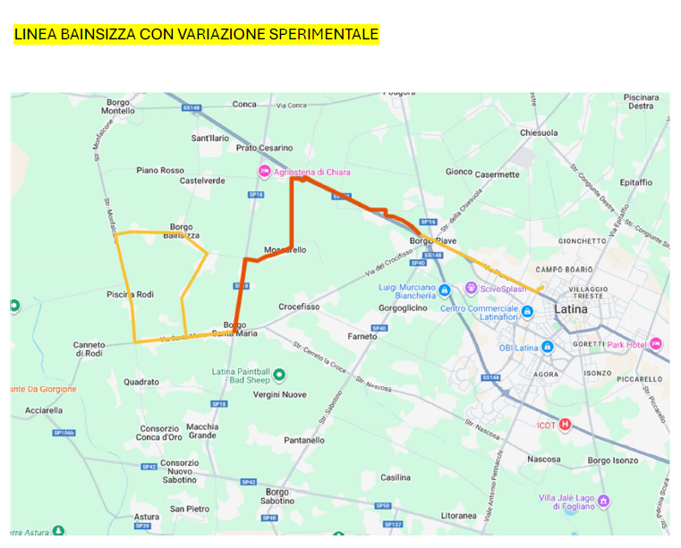 Con orari nei giorni feriali alle ore 6.30, alle 13.30 e alle 14.20. Il nuovo percorso della linea Bainsizza con variazione sperimentale, include, dalla rotonda di Borgo Piave, strada del Bastione, strada Acqua Bianca, via Ponte Rosso, via Moscarello, strada Macchia Grande e via Santa Maria, e nel percorso inverso via Santa Maria, strada Macchia Grande, via Moscarello, via Piano Rosso, strada Acqua Bianca, strada del Bastione. Con orari feriali alle ore 6.50, alle 8 (solo il sabato), alle 9.00, alle 10.15, alle 12,45, alle 13.45, alle 14.30 (solo il sabato), alle 14.45, alle 15.20, alle 17.10, alle 18. Resta inalterato il percorso della linea 209, con corse nei giorni feriali alle ore 6.45 e alle 14.20. “Per quanto riguarda gli orari – ha precisato l’assessore Di Cocco – saranno eventualmente rimodulati, sulla base delle prove di percorrenza valutate nei primi giorni di scuola, con un’intensità di traffico diversa da quella attuale”.