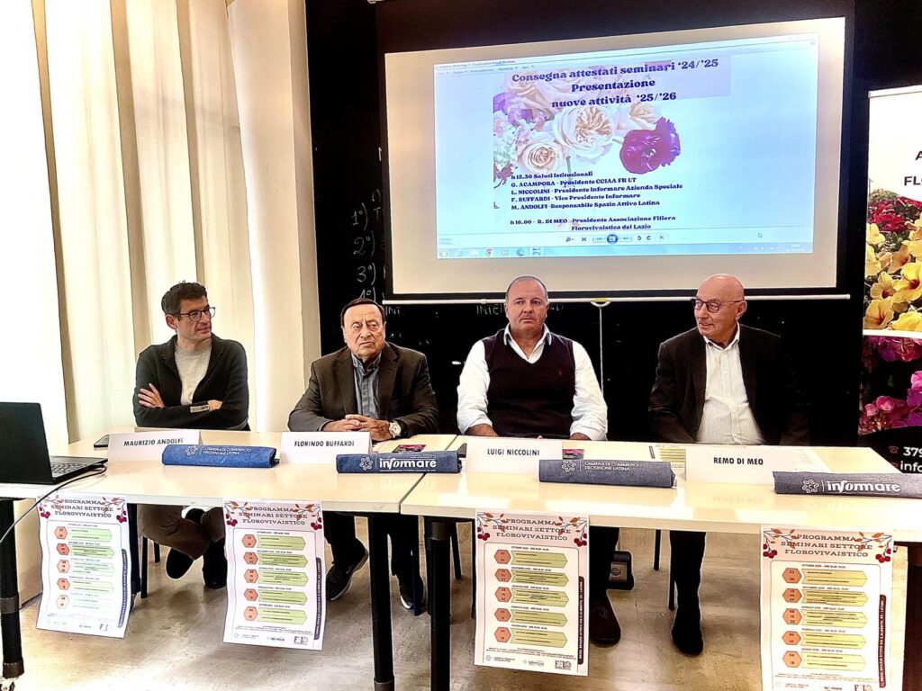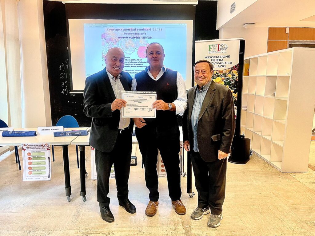 Martedì, presso la sede dello Spazio Attivo di Lazio Innova a Latina, si è tenuta invece la cerimonia di consegna degli attestati ai partecipanti del percorso formativo dedicato al settore florovivaistico, promosso dalla Camera di Commercio Frosinone Latina con la propria Azienda Speciale Informare e in collaborazione con l’Associazione Filiera Florovivaistica del Lazio.