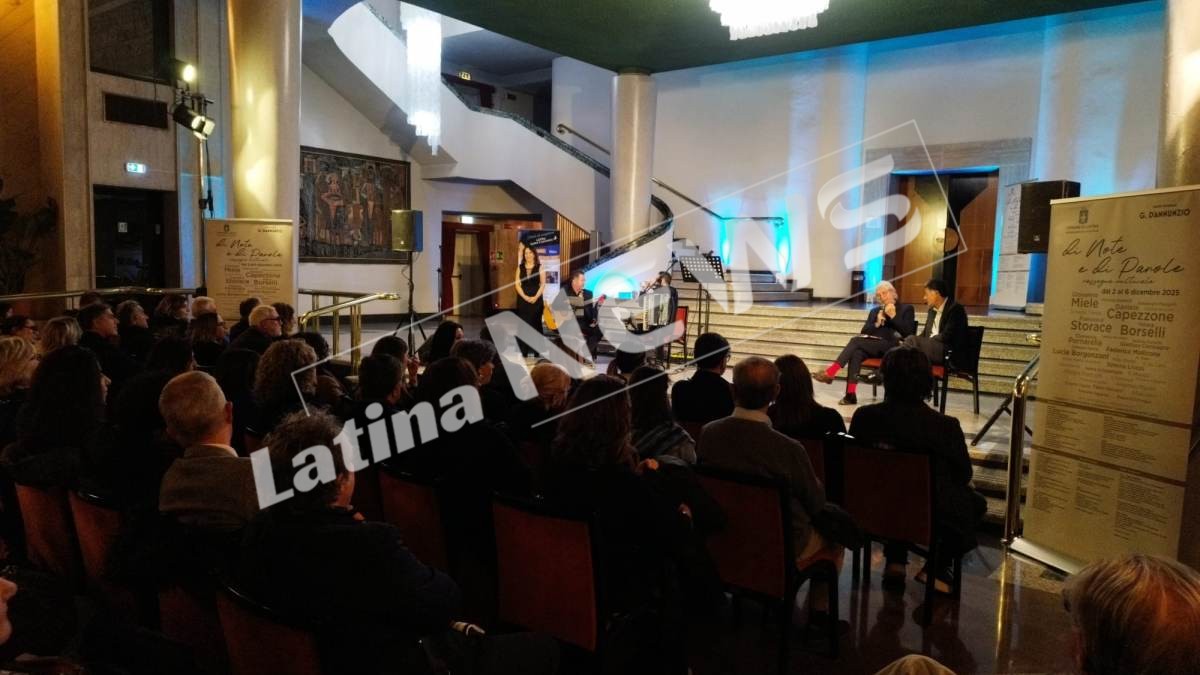 Si è trasformata in una piccola celebrazione della parola scritta, ieri sera, la presentazione dell’ultimo romanzo di Gian Luca Campagna. Il teatro Gabriele D’Annunzio di Latina, con il suo foyer intriso di storia e di memorie artistiche, ha accolto il numeroso pubblico come un antico salotto letterario, animato da letture, musica dal vivo e un’atmosfera sospesa, quasi rituale, che ha accompagnato l’intera serata.