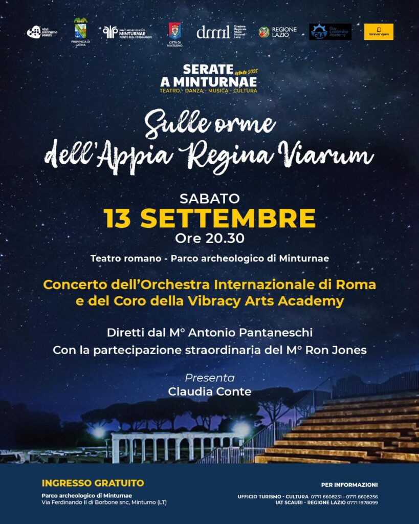 Un evento di portata internazionale celebra il prestigioso riconoscimento UNESCO della Via Appia. Regina Viarum come Patrimonio Mondiale dell’Umanità. Il celebre compositore e direttore d’orchestra Ron Jones, noto per le colonne sonore di serie TV come “Star Trek: The Next Generation” e “Family Guy” (I Griffin), sarà al Teatro di Minturnae sabato 13 settembre alle ore 20:30, per dirigere un concerto a ingresso libero.