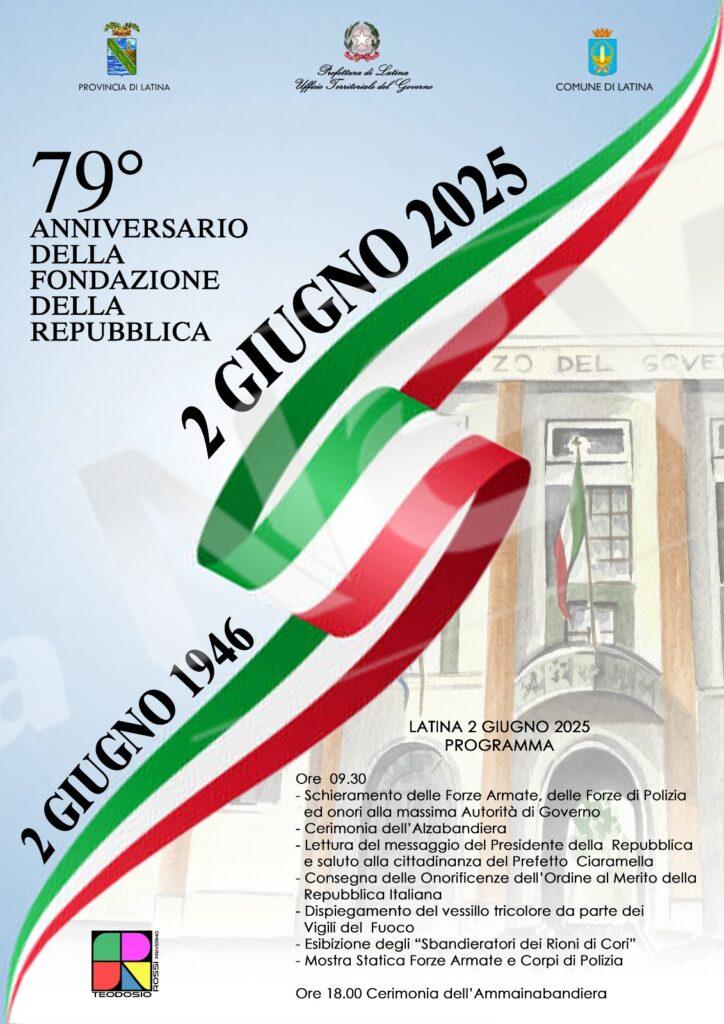 In occasione del 79° anniversario della Fondazione della Repubblica la Prefettura di Latina ha promosso una serie di iniziative di celebrazione, che sono state realizzate con la partecipazione del Comune di Latina, della Provincia, dell’Aeronautica Militare, del Comando Artiglieria Controaerei di Sabaudia e dei Vigili del Fuoco.
