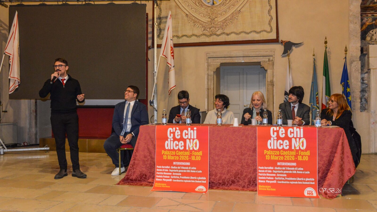 Una sala piena, attenta, partecipe. Un dibattito pubblico a Fondi, giovedì 19 marzo, Palazzo Caetani si è trasformato in un luogo di confronto e mobilitazione. L’incontro “C’è chi dice NO”, promosso dal Comitato “Società civile per il NO”, ha richiamato decine e decine di cittadini, segnale di un territorio che non intende restare spettatore.