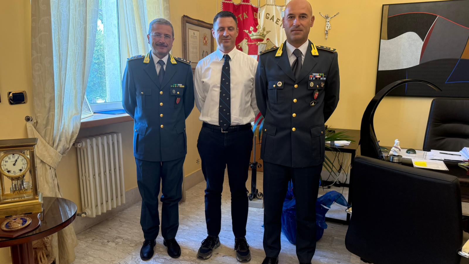 Il sindaco Cristian Leccese ha incontrato presso il Palazzo Comunale il Comandante uscente del gruppo Guardia di Finanza di Formia Ten. Col. Luigi Galluccio ed il neo Comandante Ten. Col. Paolo Zito per uno scambio di saluti, un’occasione per ringraziare il primo per il lavoro svolto e dare il benvenuto al secondo, nel segno di un avvenuto passaggio di consegne e del rafforzamento dei legami istituzionali. “Ho espresso profonda gratitudine per l’impegno, la dedizione e la professionalità dimostrati al servizio della nostra comunità al Comandante Galluccio – commenta il sindaco Cristian Leccese – Il suo operato ha contribuito a rafforzare la sicurezza e la legalità, lasciando un’impronta indelebile. Gli auguriamo il meglio per il suo percorso professionale, certi che continuerà a essere un punto di riferimento ovunque andrà.”