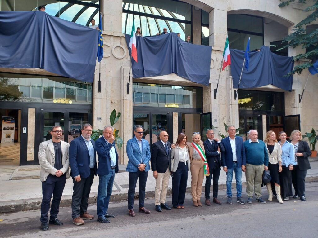 Alla presenza del sindaco di Latina Matilde Celentano, degli assessori e consiglieri comunali, è stata inaugurata venerdì mattina la nuova iscrizione marmorea del teatro “Gabriele D’Annunzio”, realizzata grazie ad un accordo di sponsorizzazione tecnica con le ditte Damiani Costruzioni e Damiani Marmi, su progetto dall’architetto Alessandro Catani. “L’opera, collocata sulla facciata principale del teatro, rappresenta un segno di identità e di orgoglio per la città, simbolo della rinascita di un luogo che torna a essere cuore culturale e sociale di Latina”, ha affermato il sindaco Celentano, ricostruendo la storia della struttura. “Il teatro comunale è inserito nel Palazzo della Cultura – ha spiegato la prima cittadina – La sua storia rispecchia quella di Latina: sorto sulle fondamenta di un edificio storico, la Caserma della Gioventù italiana del Littorio, realizzato su disegno di Oriolo Frezzotti, fu poi trasformato in una scuola. È una storia di trasformazione e resilienza. Quando, nel 1989, l’allora Sindaco Nino Corona inaugurò il teatro, realizzò una visione essenziale: dotare Latina di un cuore pulsante per l’arte e la comunità. Un luogo dove le nostre storie, le nostre passioni, potessero prendere forma sul palcoscenico. Successivamente, su spinta del consigliere comunale Cesare Bruni, il teatro fu intitolato a Gabriele D’Annunzio dall’amministrazione guidata dal Sindaco Ajmone Finestra. Un omaggio a un poeta, drammaturgo e intellettuale che, con le sue parole, ha saputo infiammare l’anima italiana. Eppure, per troppi anni, un dettaglio è mancato. Un segno visibile e dignitoso che gridasse a tutti il nome e la funzione di questo luogo sacro. Oggi, l’attesa è finita”.