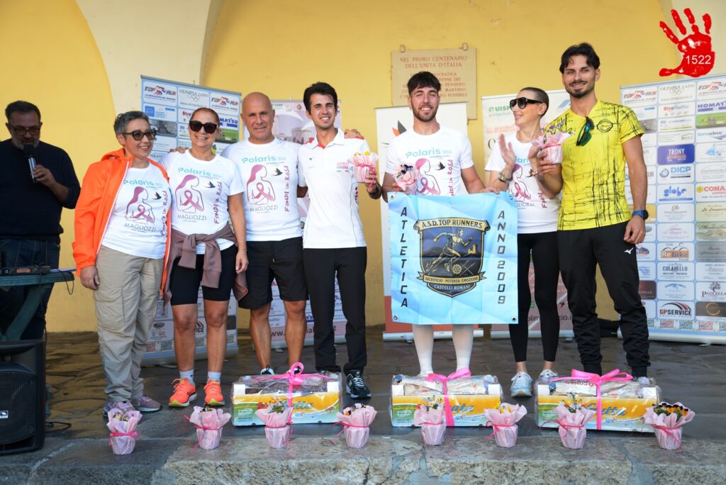 Oltre cinquecento persone hanno preso parte domenica 19 ottobre alla terza edizione della “Fondi in Rosa”, nuova tappa del Grande Slam UISP organizzata dall’Olimpia Lazio. Su un percorso di 9 km, presidiato dalla Polizia Municipale, dai volontari dell’associazione di Protezione Civile “Falchi Pronto Intervento”  e da Odv Gruppo Volontariato e Protezione civile dell’associazione nazionale Polizia di Stato Terracina, ha concesso il bis Gabriele Carraroli del Centro Fitness Montello, giunto al traguardo con un tempo di 28’17’’, migliore di 11’’ rispetto al successo dello scorso anno. Dopo di lui si sono piazzati Federico Cellucci della Top Runners Castelli Romani (29’11’’) e Piergiorgio Luzi dell’Atletica Ceprano (29’57’’). Tra le donne, invece, ha dettato legge un’altra atleta del Centro Fitness Montello, Francesca Macinenti, con un tempo di 35’10’’. Sul podio, come nel 2024, si sono piazzate Roberta Andreoli (35’41’’) e Simona Di Mauro (37’02’’). Tra le società, infine, si è imposta la Fondi Runners 2010 davanti alla Polisportiva Ciociara Antonio Fava e alla Poligolfo.