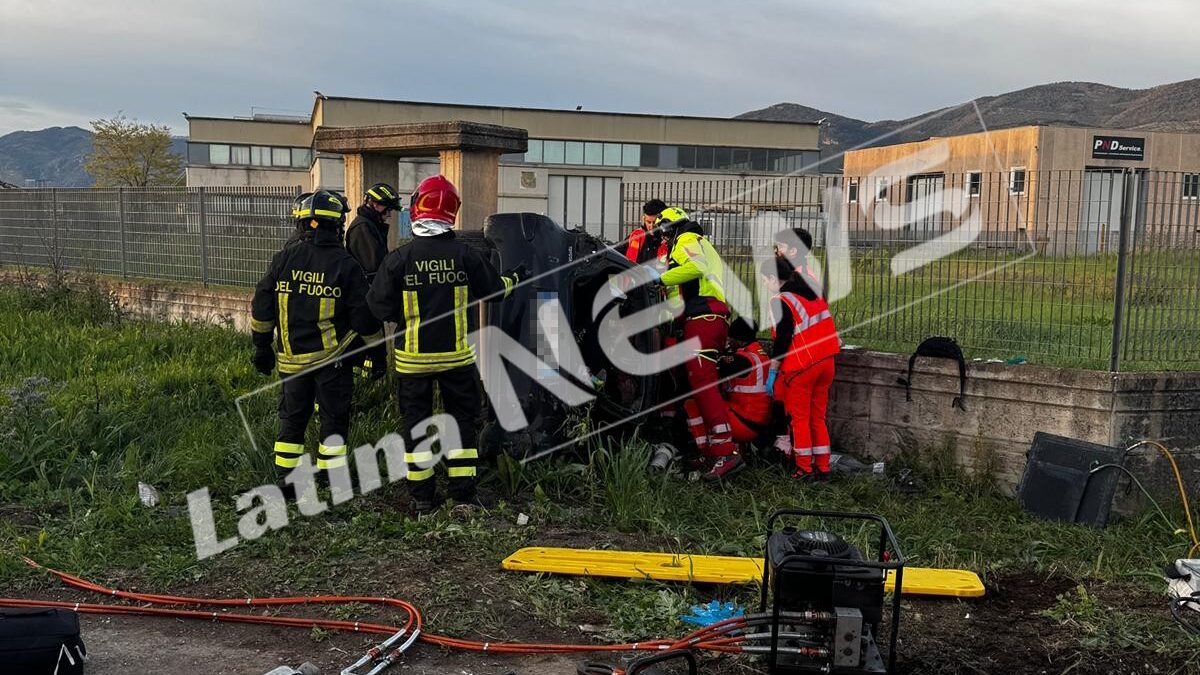Latina, con l’auto prende una macchina in sosta e si ribalta: soccorsa una donna