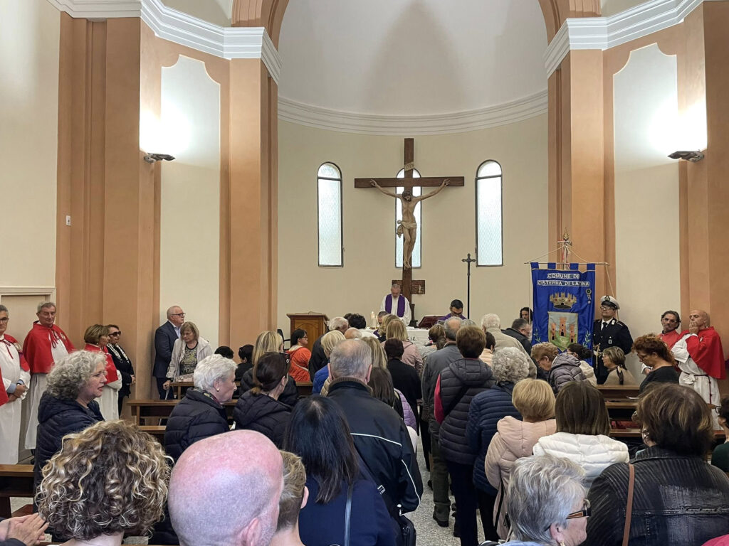 I sacerdoti delle parrocchie di Cisterna hanno concelebrato domenica pomeriggio alle ore 15:30, la Santa Messa in commemorazione di tutti i defunti, presso la chiesa del cimitero, recentemente restaurata. La celebrazione ha visto la partecipazione di un numero straordinario di fedeli: le panche all’interno della chiesetta e le sedie sistemate sul sagrato non sono bastate a contenere tutti i presenti. Tra le autorità civili intervenute, il Sindaco Valentino Mantini e altri rappresentanti dell’Amministrazione comunale.