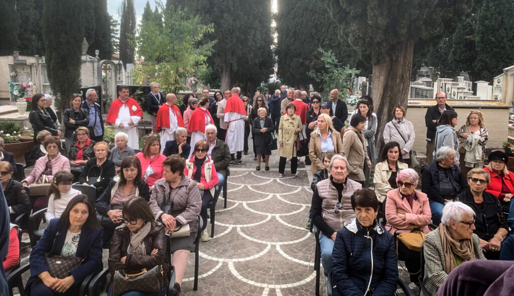 Nell’omelia, Don Fabrizio Cavone, nuovo parroco della Collegiata di Santa Maria Assunta in Cielo dallo scorso 26 ottobre, ha definito la chiesa del cimitero come la “Casa della speranza”, invitando i fedeli a “guardare da dove entra la luce” e a non “restare fermi a guardarsi i piedi”, ma a vivere un’autentica esperienza di comunità, soprattutto in un tempo segnato dalla solitudine. La celebrazione ha dato l’opportunità di riaprire ai fedeli e l’edificio sacro al termine dell’intervento di restauro. Tra i risultati più significativi dei recenti lavori, la ricerca sui colori originali, che ha permesso di rimuovere le aggiunte stratificatesi nel corso dei decenni. Durante la raschiatura delle tinte è riemersa anche una parte della scritta storica del fregio della facciata, oggi nuovamente visibile, restituendo alla chiesetta il suo volto autentico e armonioso.