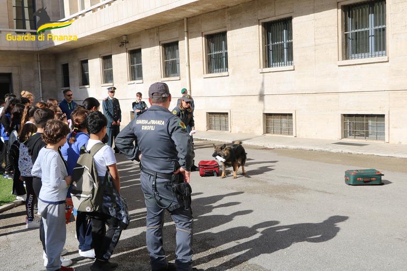 Quest’ultimo momento ha destato stupore ed entusiasmo negli alunni ma anche negli adulti, che hanno potuto apprezzare il livello di addestramento e delle abilità olfattive e di ricerca di colli di sostanze psicotrope e stupefacenti, compiutamente occultate su taluni zaini dedicati. Nel corso della dimostrazione dei due fieri esemplari di pastore tedesco, diverse sono state le domande e le curiosità dei giovani ma anche dei meno giovani, e per i bambini più “temerari”, sempre attentamente, seguiti e guidati dagli esperti cinofili conduttori, non è mancata occasione di poter accarezzare gli amici a quattro zampe, molto vivaci, giocherelloni ed intrepidi, ma tendenzialmente docili.