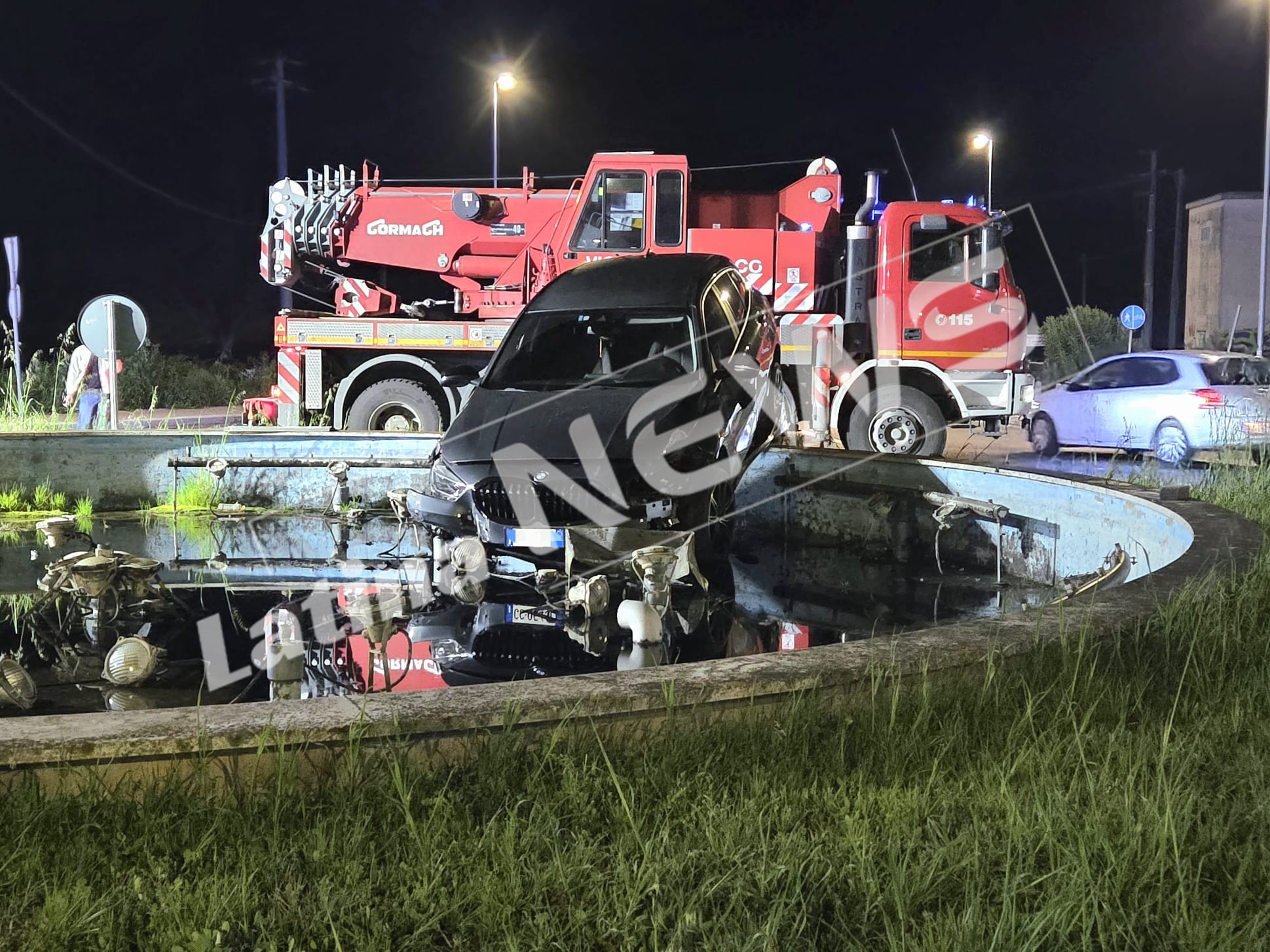 Home Cronaca Latina – Finiscono con l’auto nella fontana della rotatoria, illesi tre giovani