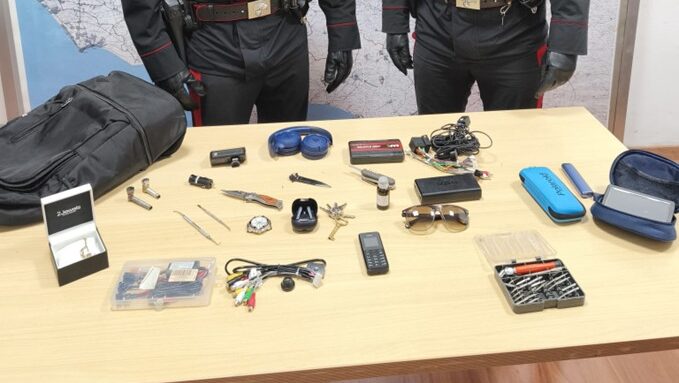 È stato trovato in possesso di tre coltelli, un orologio, un braccialetto in oro e diversi arnesi da scasso.