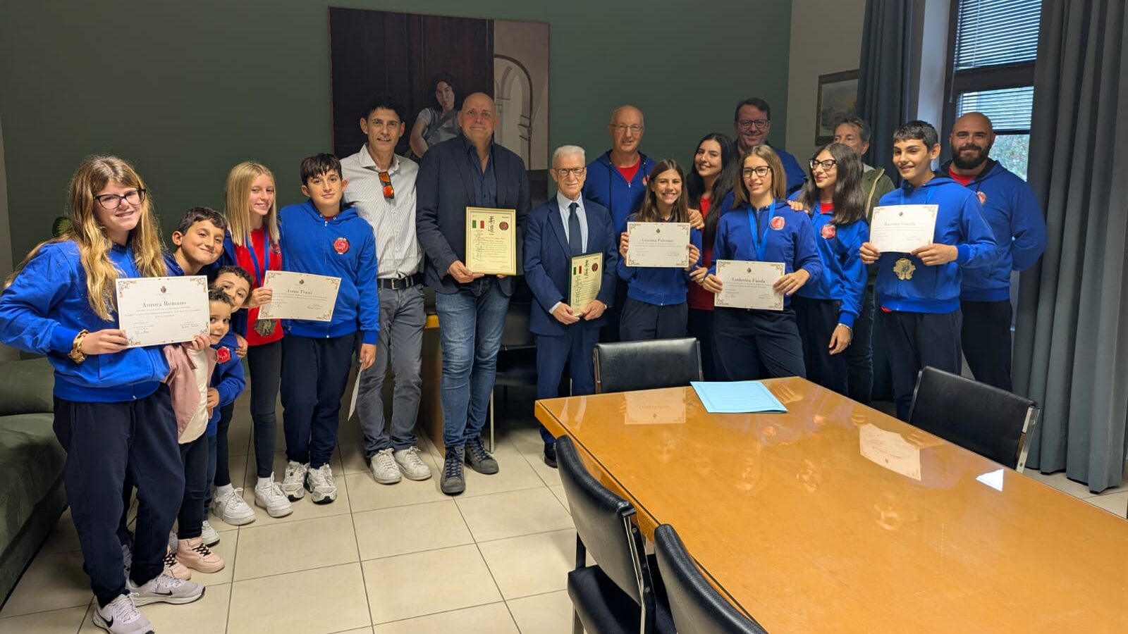Ancora una premiazione simbolica presso il Comune di Fondi dove il sindaco Beniamino Maschietto e l’assessore allo Sport Fabrizio Macaro hanno consegnato delle pergamene agli atleti che si sono distinti al Trofeo Italia Esordienti A di Judo che si è tenuto a Mola di Bari. Una piccola iniziativa per premiare chi ha ottenuto un risultato importante, dando lustro alla Città di Fondi, e per incoraggiare chi ha comunque vinto, come sottolineato dall’assessore durante l’incontro, in quanto ha fatto una scelta di vita vincente: fare sport. Applausi e congratulazioni per Ludovica Faiola e Massimo Ciotola, tornati a casa con una bellissima medaglia d’oro, ma anche per Anna Trani, salita sul terzo gradino del podio e per Aurora Romano e Antonio Quadrino che hanno ottenuto un prezioso quinto posto. Un riconoscimento per l’impegno e la partecipazione è andato, infine, anche a Cristina Palermo.