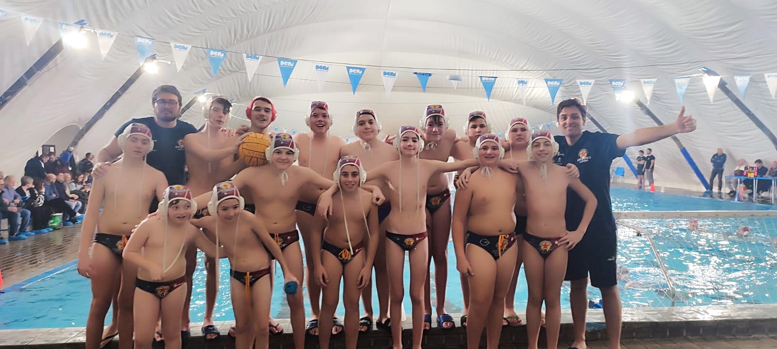 “Che entusiasmo e che bello vedere tutti i ragazzi felici a fine partita. Il clima che si è creato quest’anno ed i nuovi arrivi in squadra dimostrano che quando si mettono da parte i personalismi e si ragiona da squadra dentro e fuori dalla vasca si va lontano e i fatti valgono più di mille parole. Non importa vincere o perdere ma divertirsi ed essere tutti protagonisti dando opportunità a tutti di esprimersi. Oggi voglio fare un particolare plauso ai 2013, alcuni anche in gol, come Federico Battista, al ritorno in acqua di Agostini Christian e al nostro super portiere Gianluca Di Matteo”.