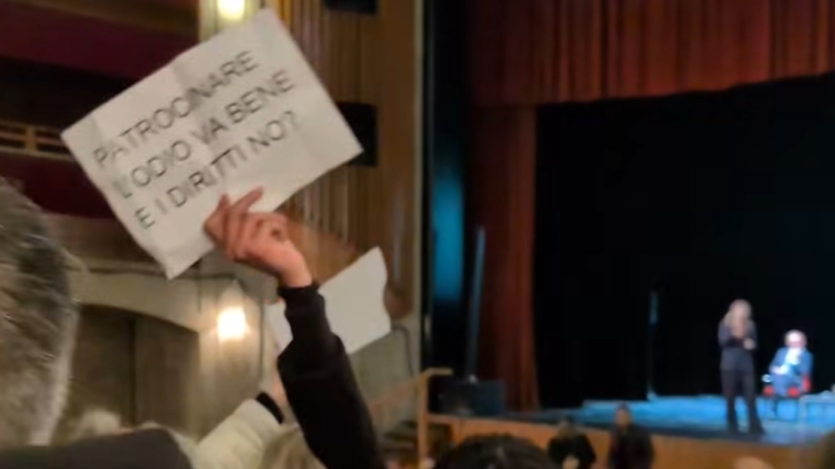 E probabilmente anche per questo, la comunità “arcobaleno”, attraverso l’Arcigay del capoluogo pontino “Seicomesei” ha espresso già nei giorni precedenti, e poi ieri sera nel bel mezzo dell’iniziativa, tutto il proprio dissenso per l’evento. Gli attivisti, seduti in teatro non nelle prime file, ad un tratto si sono alzati in piedi con fogli, scritte e urla di disapprovazione lasciando la sala. Successivamente, hanno diffuso una nota: “A Latina non può esserci spazio per l’odio sopratutto quando viene presentato come cultura”. I rappresentanti dell’Arcigay hanno contestato soprattutto il luogo in cui si è svolto l’evento: ovvero il teatro comunale di Latina, non uno spazio privato, con tanto di fondi pubblici e patrocinio istituzionale. I manifestanti hanno affermato di essere oltre centro, suggerendo come “non si è trattato di una testimonianza isolata, ma una presenza collettiva che ha occupato lo spazio pubblico”. L’accusa è mossa direttamente all’Amministrazione comunale: “È chiamata a rispondere delle scelte compiute” affermano nella nota” accusando come “durante la presentazione abbiamo percepito un clima da evento politico di parte, più simile a un comizio che a una presentazione editoriale”.
