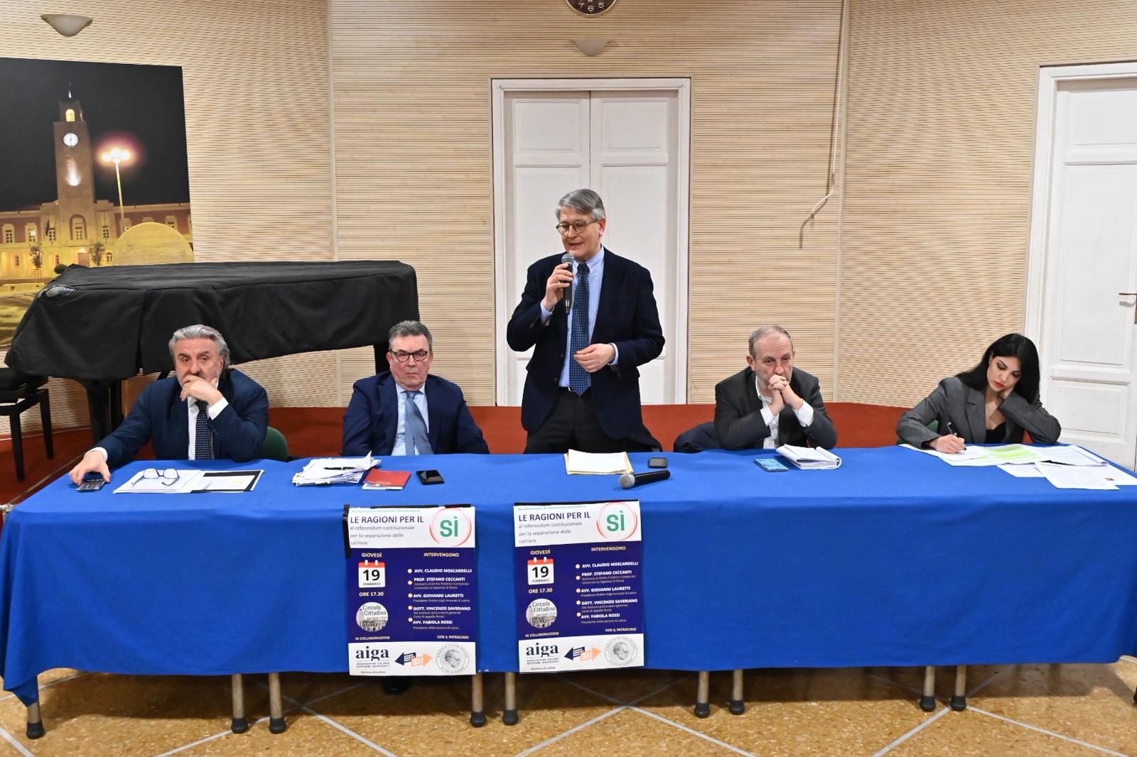 Al tavolo del relatori oltre all’ex senatore e avvocato Claudio Moscardelli, il professore ordinario di diritto pubblico comparato a La Sapienza Stefano Ceccanti, il presidente dell’ordine degli avvocati di Latina Giovanni Lauretti, il già sostituto procuratore generale della Corte di Appello di Roma e la presidente dell’associazione italiana giovani avvocati di Latina Fabiola Rossi.