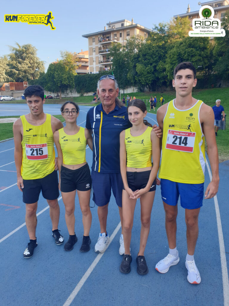 Alla manifestazione ha preso parte anche l’apriliana Giorgia Bono, che dopo un passato giovanile nella Runforever si è iscritta con la ACSI Italia Atletica. Giorgia, allieva, allenata dal presidente della Runforever Renzo Traballoni, purtroppo è partita dai blocchi con un risentimento muscolare che non le ha permesso di correre al massimo, tagliando il traguardo in 13”.13 arrivando 8a assoluta su 24 atlete. Dispiace moltissimo per i nostri atleti Giorgia e Matteo che si sono infortunati in gara e non hanno potuto esprimersi come avrebbero voluto. Per Matteo la pista di Colleferro è una vera pecora nera (anche se le corsie sono blu), visto che è la seconda volta consecutiva che gli capita. Ottimo risultato di Giulia che finalmente ha corso un 1000 a 3’20”. Rebecca invece di 1000 metri ne ha corsi almeno 20 di più, visto che ha fatto tutta la gara in seconda corsia e che gli è costato il suo personale che ha sfiorato di pochi centesimi. È una ragazza molto giovane che deve ancora fare esperienza sulle piste di atletica. Bene anche Francesco che migliora il suo primato di poco, anche se con l’amaro in bocca per non aver fatto di meglio. Giulia, Francesco, Luca e Chiara hanno anche fissato un nuovo record Runforever per la loro categoria sulla distanza. Insomma… la stagione è appena iniziata e gli atleti della Runforever avranno tutti la possibilitàdi rifarsi nelle prossime gare e di migliorare e crescere atleticamente, considerando soprattutto il fatto che si stanno allenando orfani di pista, ospiti dellaASD Aprilia Rugby presso il campo “Gianni Rodari” in via della Meccanica, a cui vanno i nostri ringraziamenti a tutto il direttivo e al suo presidente Alessandro Martino che ci sopportano ormai sin dall’inizio della scorsa stagione. Ora è tempo di tornare in campo per gli allenamenti ma anche di festeggiare i nuovi record stabiliti dagli atleti della Runforever con le ottime ciambelline fritte di Lucia, mamma di Giulia. Fiduciosi di tornare presto ad allenarci presso la “quasi” ultimata pista di atletica dello stadio “Quinto Ricci”.