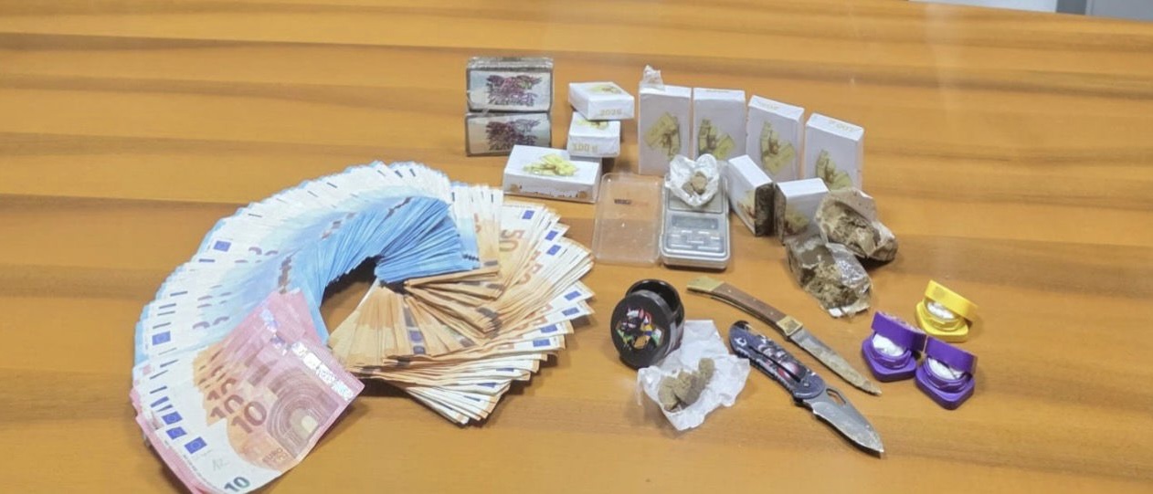 La successiva perquisizione domiciliare ha fatto emergere un quadro ancora più grave. All’interno dell’abitazione, infatti, sono stati rinvenuti ulteriori 5.680 euro in contanti, circa un grammo di cocaina custodita in un involucro di cellophane, un bilancino di precisione, due coltelli a serramanico intrisi di sostanza stupefacente, materiale per il confezionamento e un’agenda manoscritta con nomi e cifre riconducibili all’attività di spaccio.
